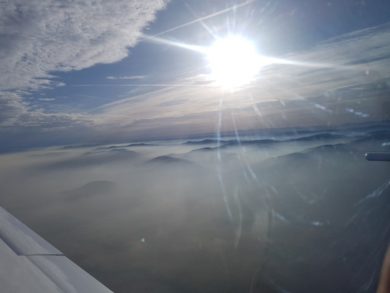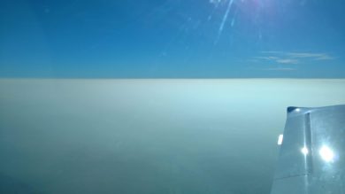 Quel vol mes z’anmis ! Navigation prévue ko. Le radar météo sur nos téls annonçait une belle nappe nuageuse dans l’est. Bah, on va tester un tour de piste et…